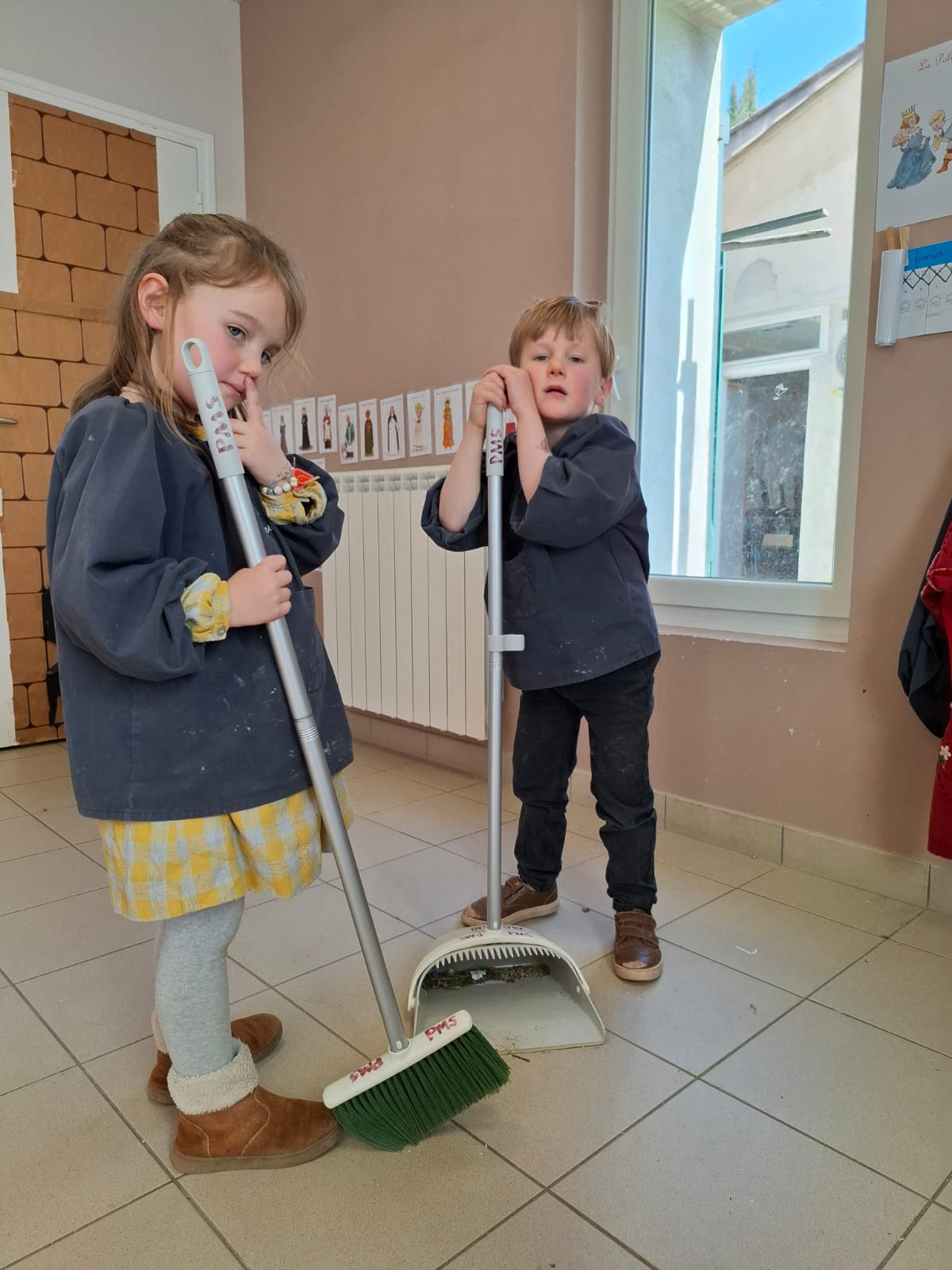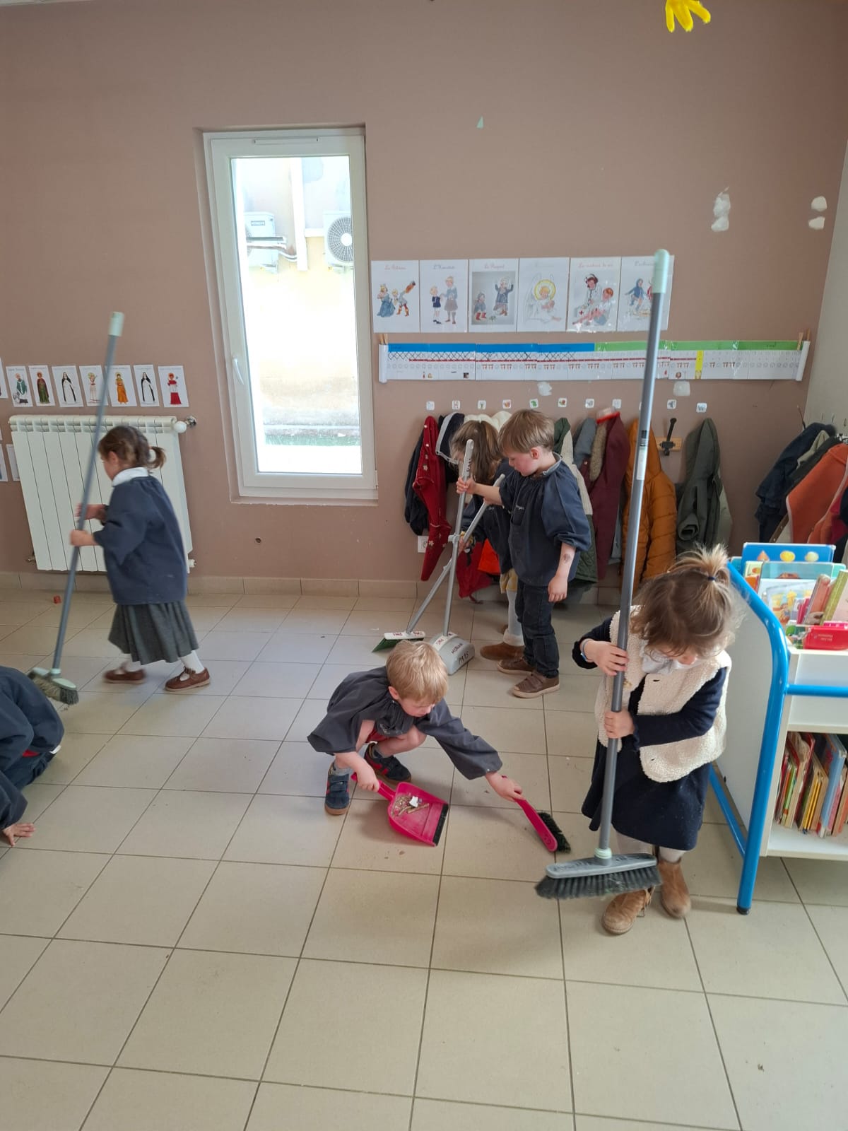 En ce début d’avril, les enfants de petite et moyenne section ont mis la main à la pâte et au balai !