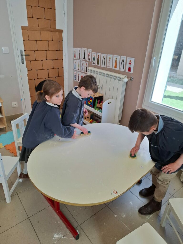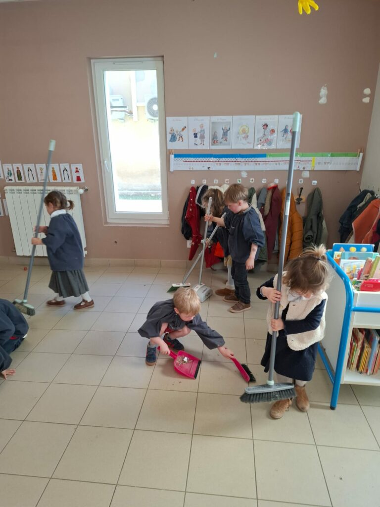 Ces moments d’entraide et d’apprentissage par le faire sont essentiels pour développer l’autonomie et le sens du service. Bravo à tous nos petits travailleurs !