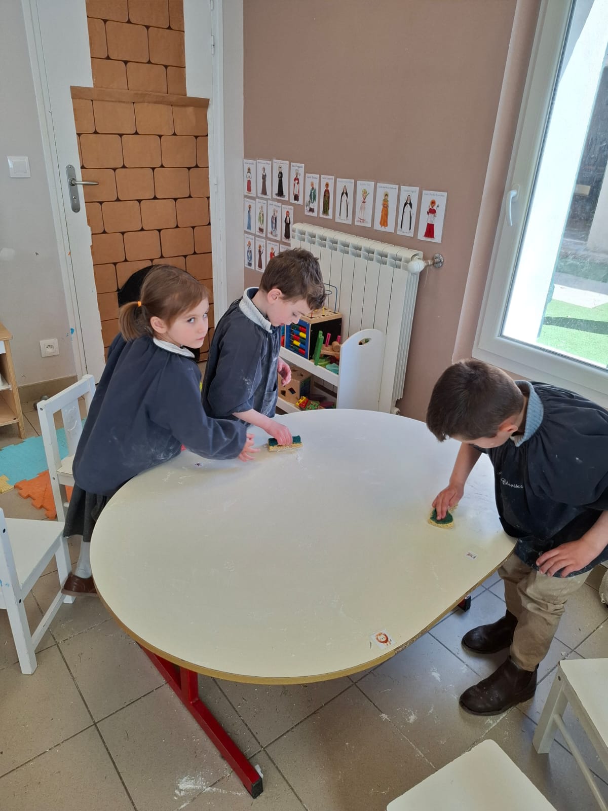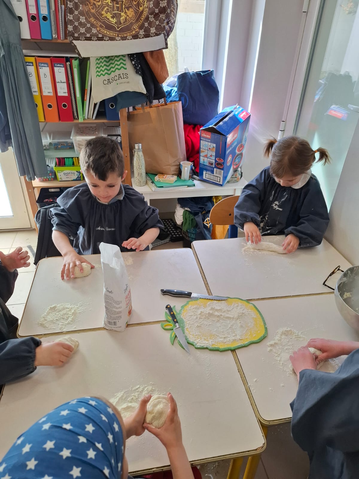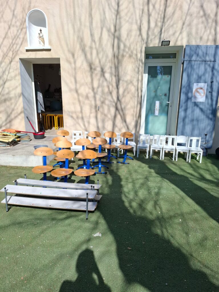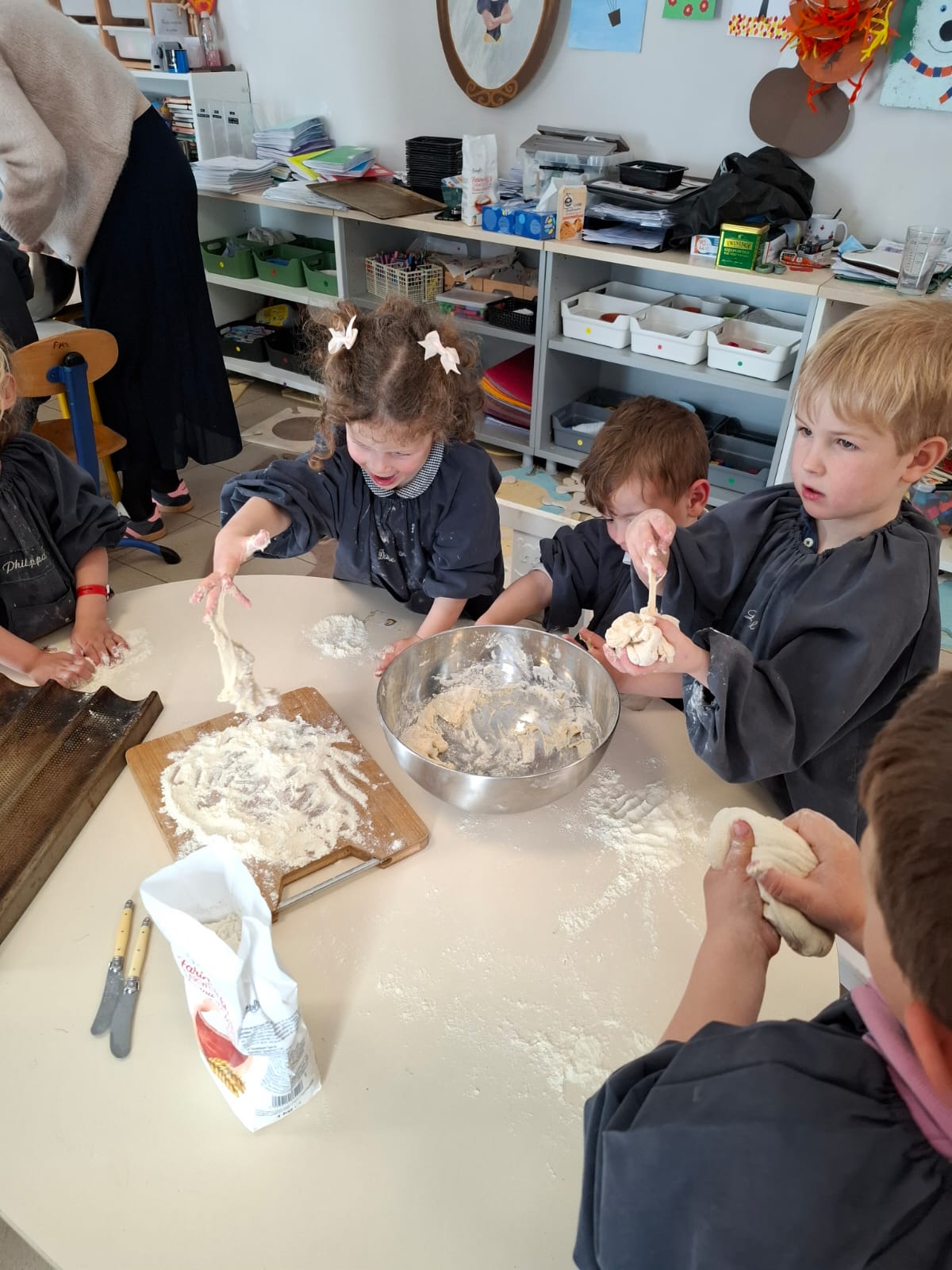 Lors de notre atelier « fabrication du pain », les apprentis boulangers ont découvert le plaisir de pétrir la pâte. Une belle leçon de patience et de motricité pour voir le pain lever et dorer. Pour le « ménage de printemps », chacun a pris sa part de responsabilité. Munis de balais, de pelles et d’éponges, les enfants ont nettoyé la classe et le mobilier avec un enthousiasme communicatif. Les chaises ont même pris l’air dans la cour pour un grand rafraîchissement !