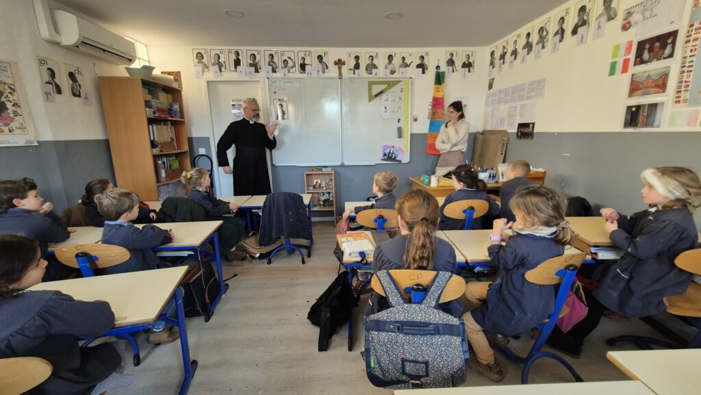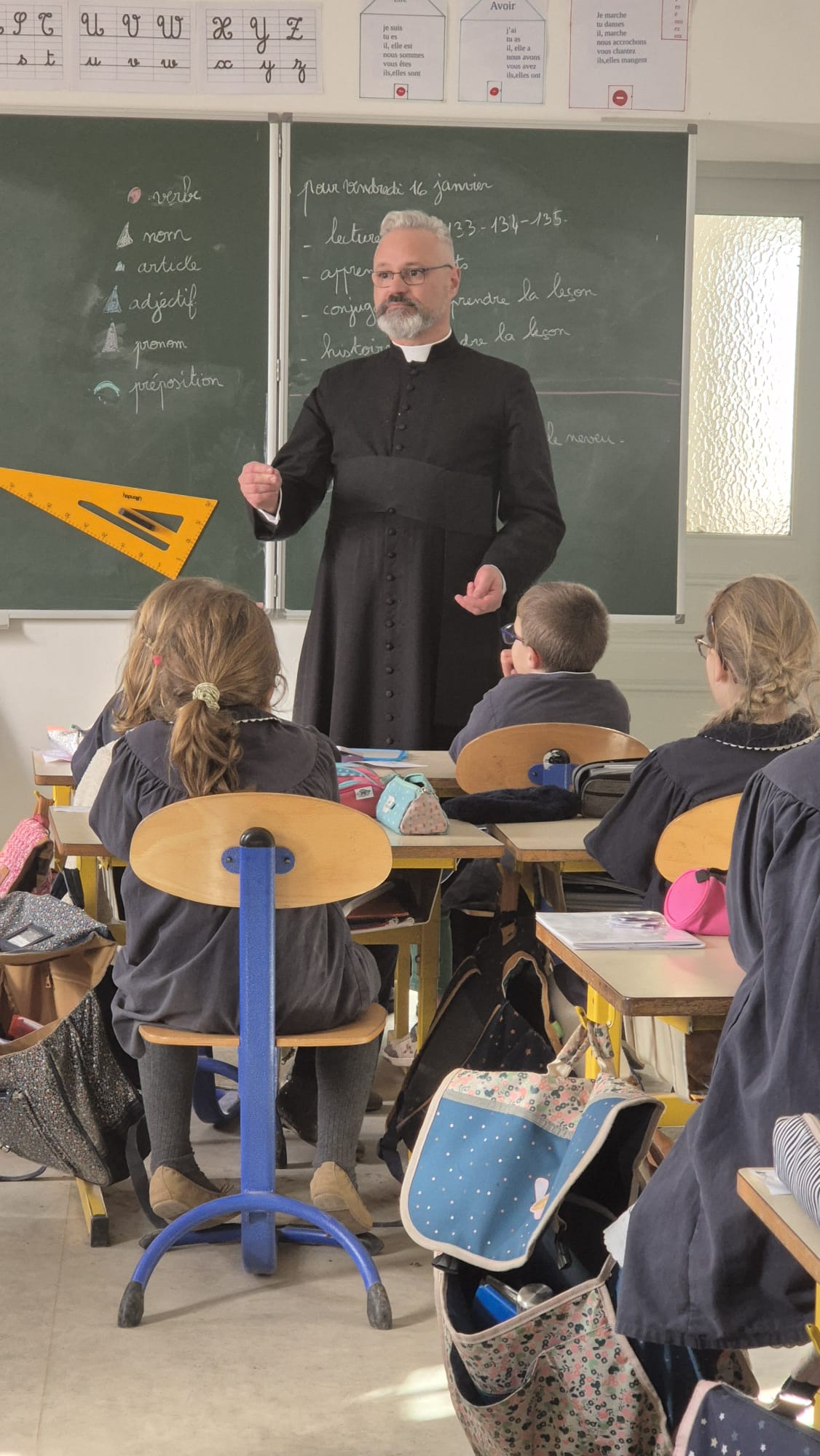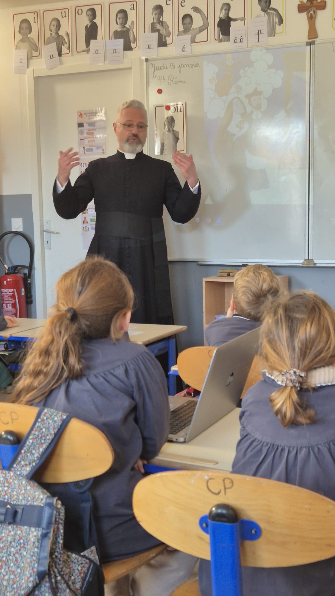 Le jeudi 15 janvier, l’école a eu la joie d’accueillir l’abbé Bruno Gerthoux pour une journée d’enseignement consacrée aux 32 bienheureuses martyres d’Orange. Après être intervenu dans chaque classe et avoir partagé le déjeuner avec l’équipe éducative, l’abbé a clôturé cette belle journée par un temps de prière et une bénédiction des élèves avec les reliques.