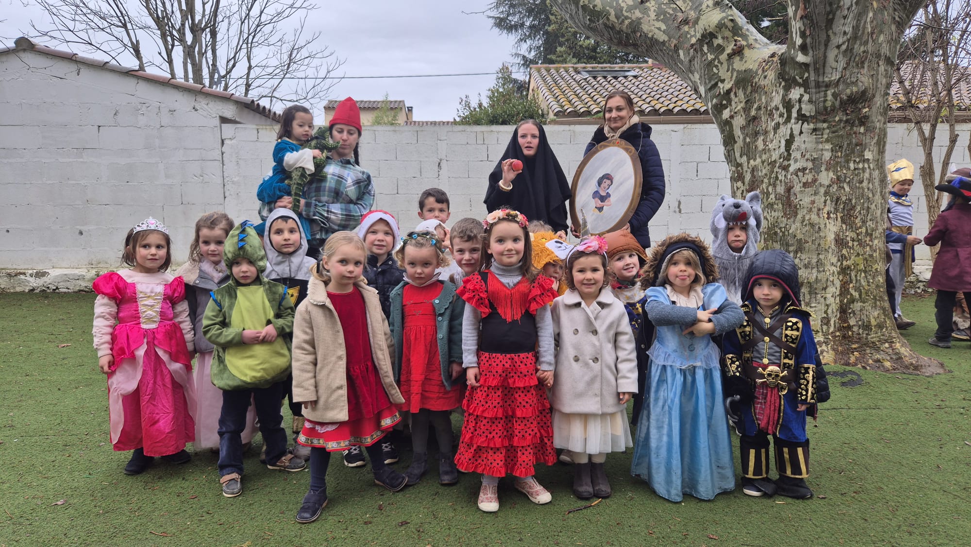 Après s’être bien amusés, les petits chevaliers et princesses ont profité d’un délicieux goûter offert par l’équipe convivialité. Un immense merci aux mamans pour leur participation costumée, ainsi qu’à notre directrice et ses « sept nains » (les maîtresses) pour avoir fait briller les yeux des enfants !